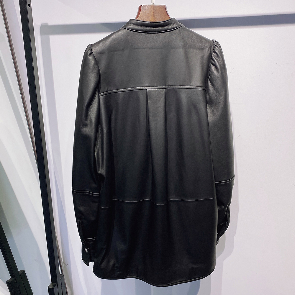2022 Autumn New Oversized Women Single Breasted Leather Shirt Blouse Real Leather Jacket For Ladies