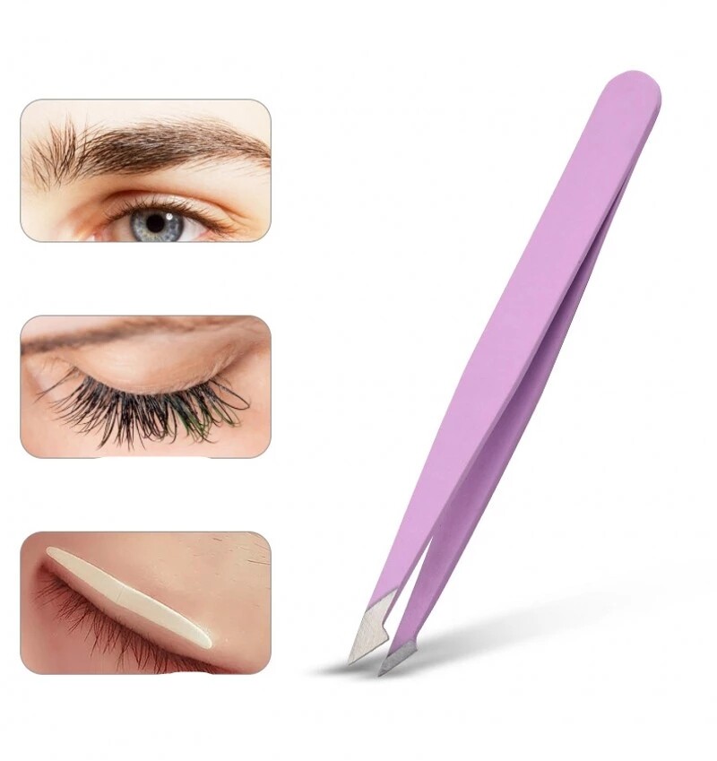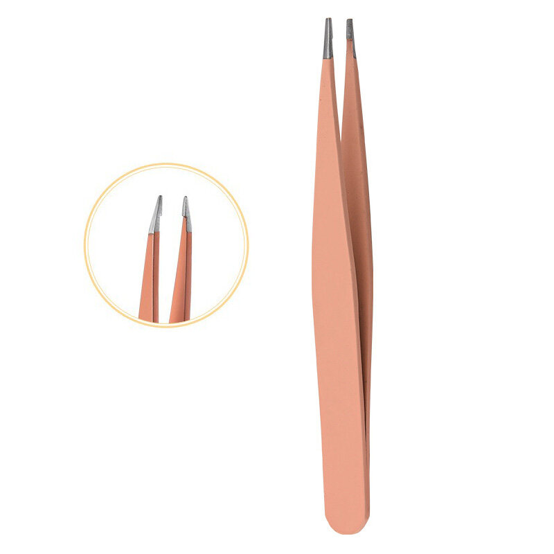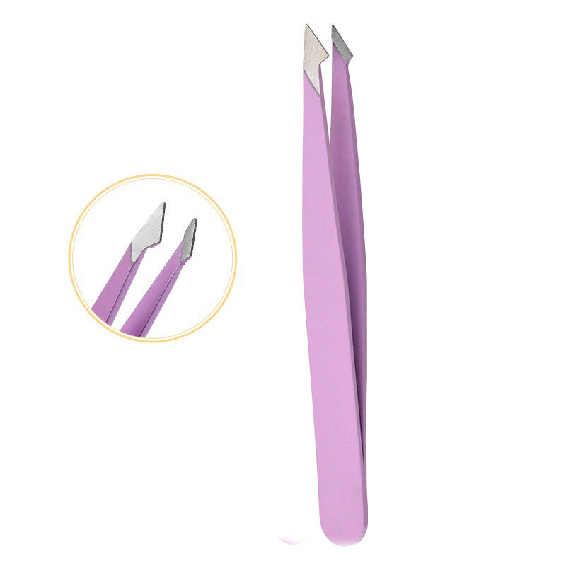 Hair Removal Tweezers Stainless Steel Eyebrow Tweezers Pink Slanted Black Tip Point Face Harmless Makeup Beauty Tool
