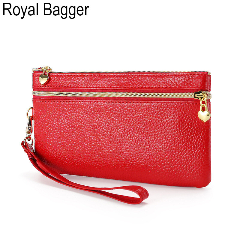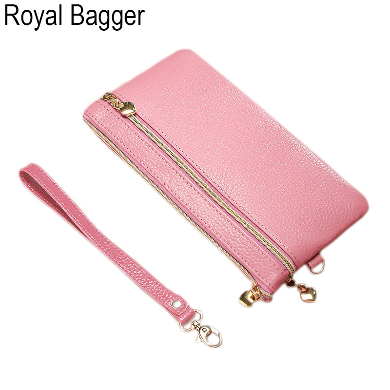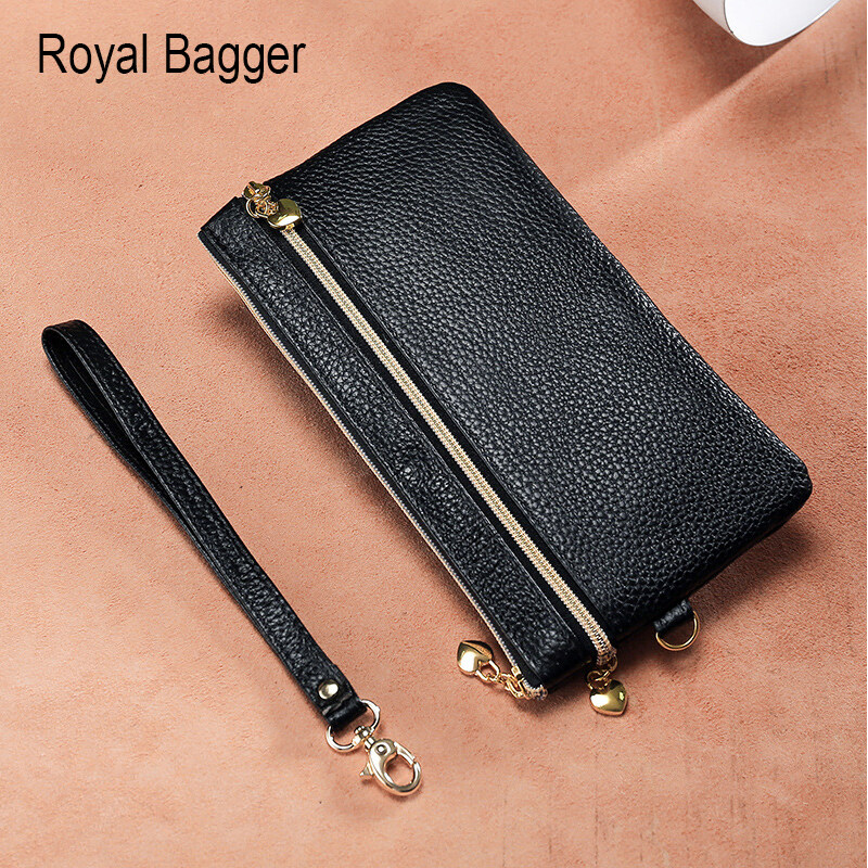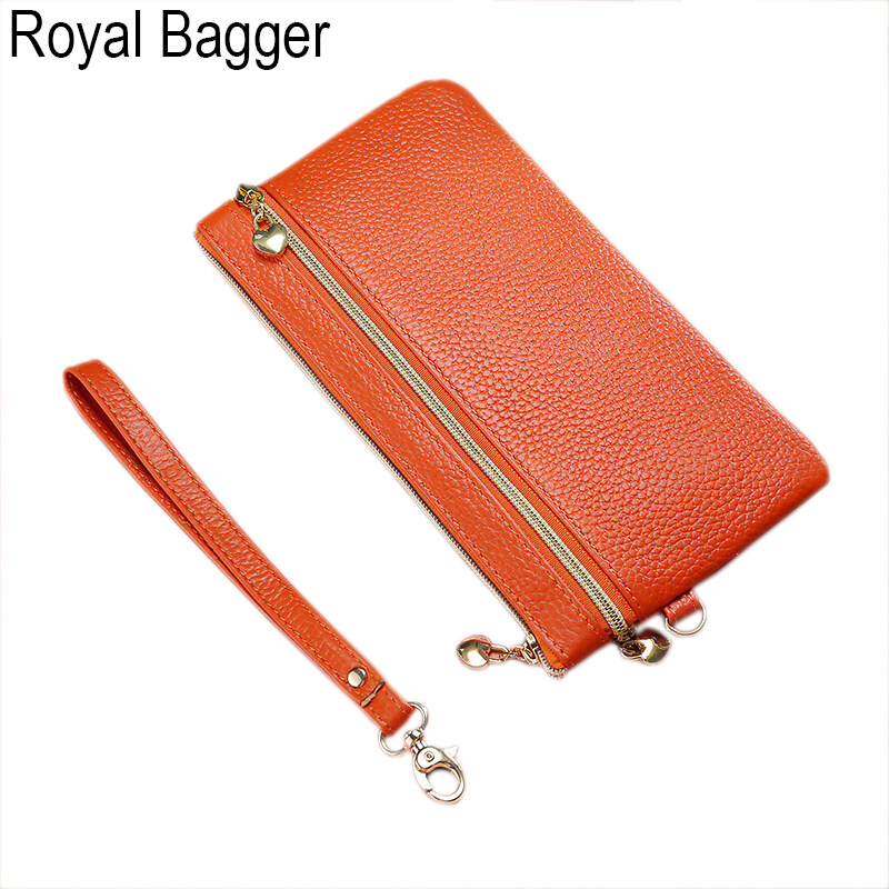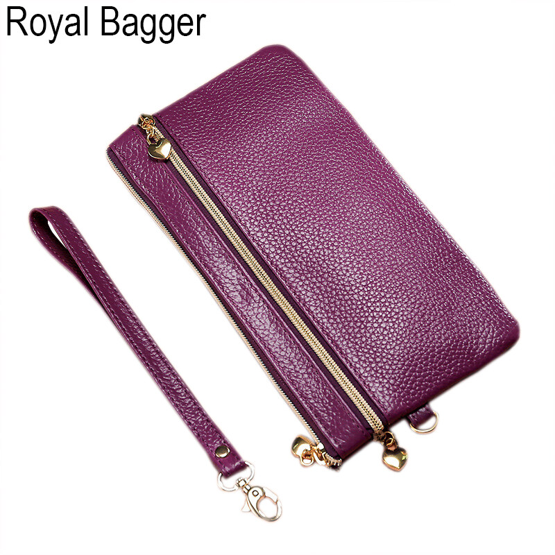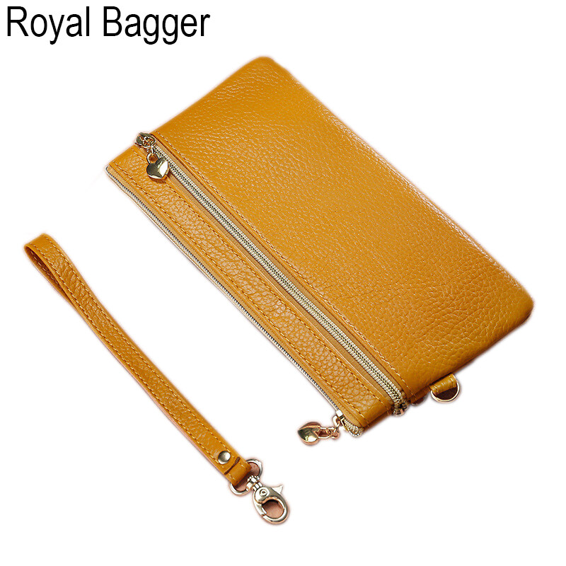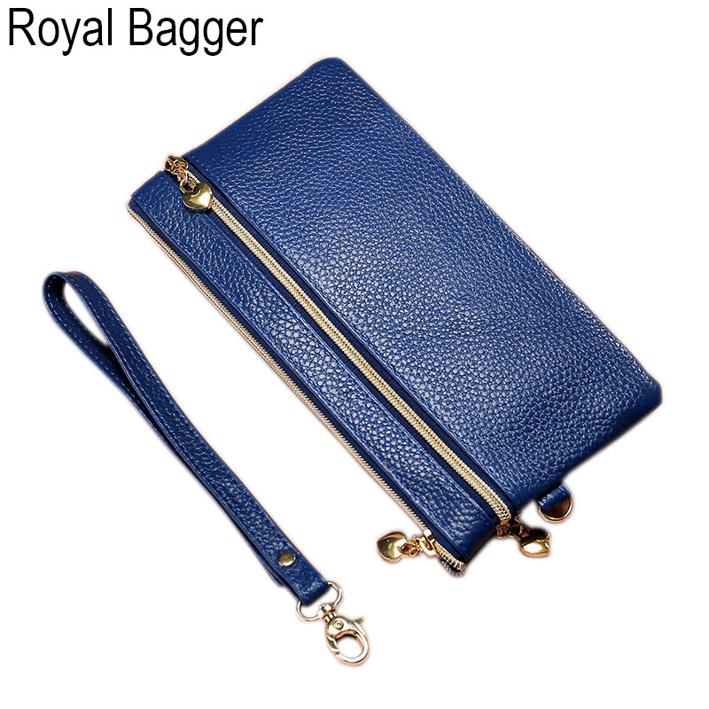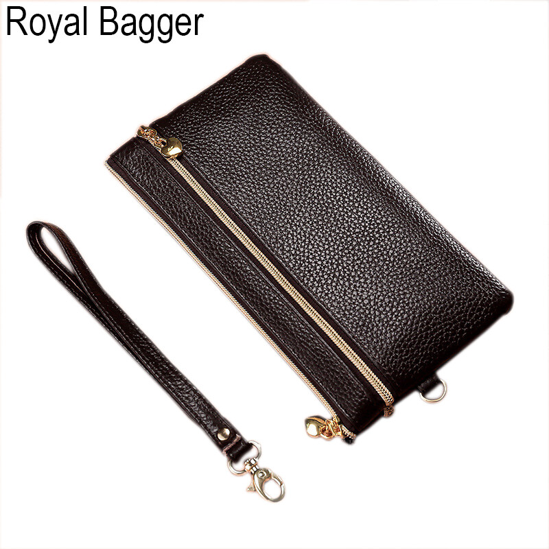 Royal Bagger Long Wallet Purse For Women Girls Genuine Cow Leather Fashion Clutch Shoulder Bags Handbag Multifunction